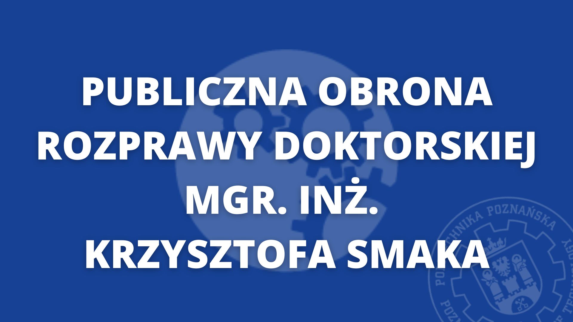 DZIEKAN I RADA DYSCYPLINY INŻYNIERII MECHANICZNEJ POLITECHNIKI POZNAŃSKIEJ zawiadamiają o publicznej dyskusji nad rozprawą doktorską w dziedzinie nauk inżynieryjno- technicznych w dyscyplinie inżynieria mechaniczna mgr. inż. Krzysztofa SMAKA na temat: „Badania procesu skrawania osiowo – symetrycznych cienkościennych części silników lotniczych o dużej smukłości wykonywanych z materiału trudnoskrawalnego”