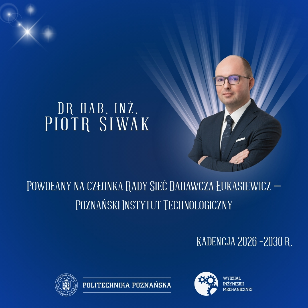 Data dodania 12.03.2026 Udostępnij: Powołanie dr. hab. inż. Piotra Siwaka Bardzo miło nam poinformować, że z dniem 9 marca 2026 r. dr hab. inż. Piotr Siwak został powołany na członka Rady Sieć Badawcza Łukasiewicz - Poznański Instytut Technologiczny na okres kadencji 2026 r. - 2030 r. Serdecznie gratulujemy. Language PL